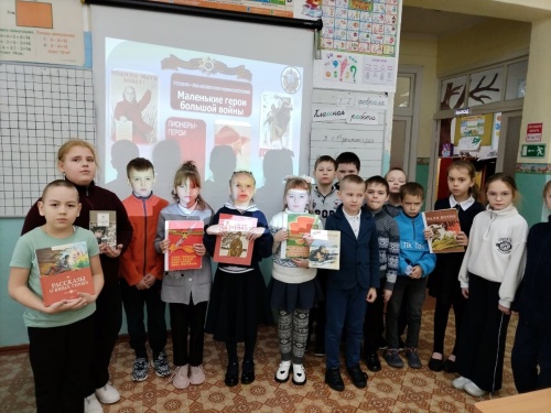 В завершение мероприятия участники познакомились с книжной выставкой "Маленькие герои большой войны", где представлены книги о судьбах юных защитников Родины.