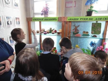 Выставки декоративно-прикладного творчества оформленные преподавателями и воспитанниками РДТТ, а также детей, посещающих кружок "Мягкая игрушка" в Мамской СОШ. Привлекли внимание учащихся МСОШ, а также жителей посёлка.