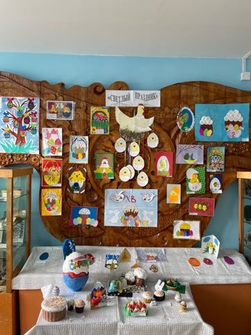 24 апреля в отделе музейных фондов оформлена выставка детского творчества «Светлый праздник». На выставке представлены работы, выполненные воспитанниками детских садов и учащихся Мамской средней школы.Экспозиции выполнены в разных техниках: бумагопластика, аппликация, акварель, роспись, папье-маше.