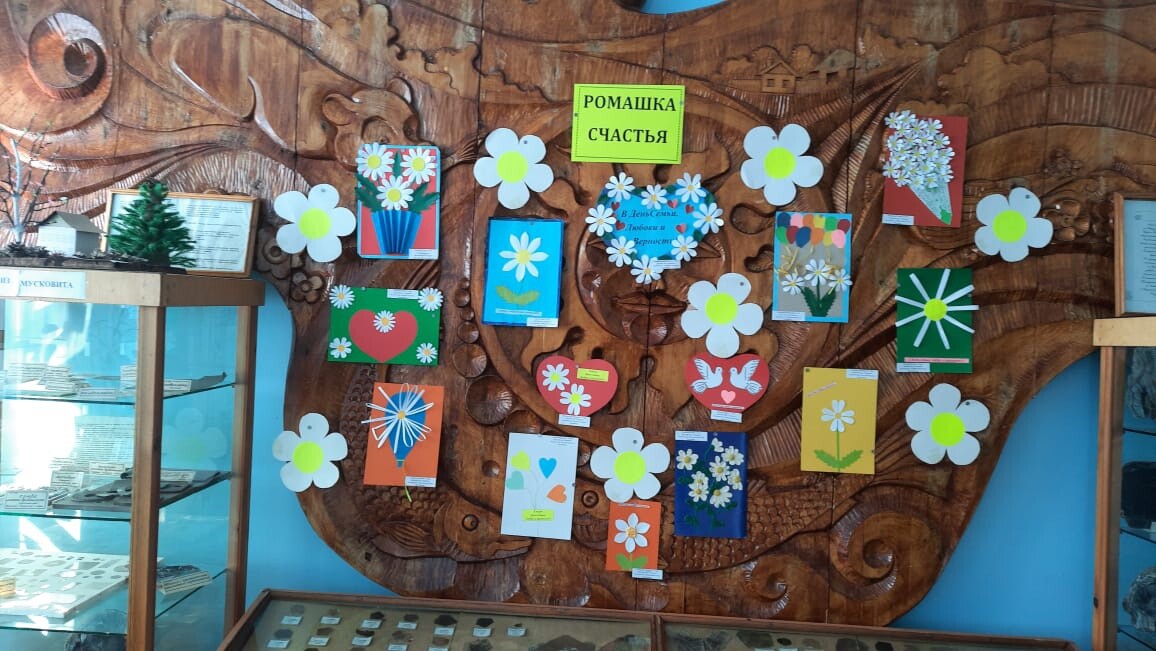 В отделе музейных фондов демонстрируется выставка «Ромашка счастья» детей детского сада «Теремок», посвященная празднованию Дня Семьи, Любви и Верности. Приглашаем посетить нашу выставку.