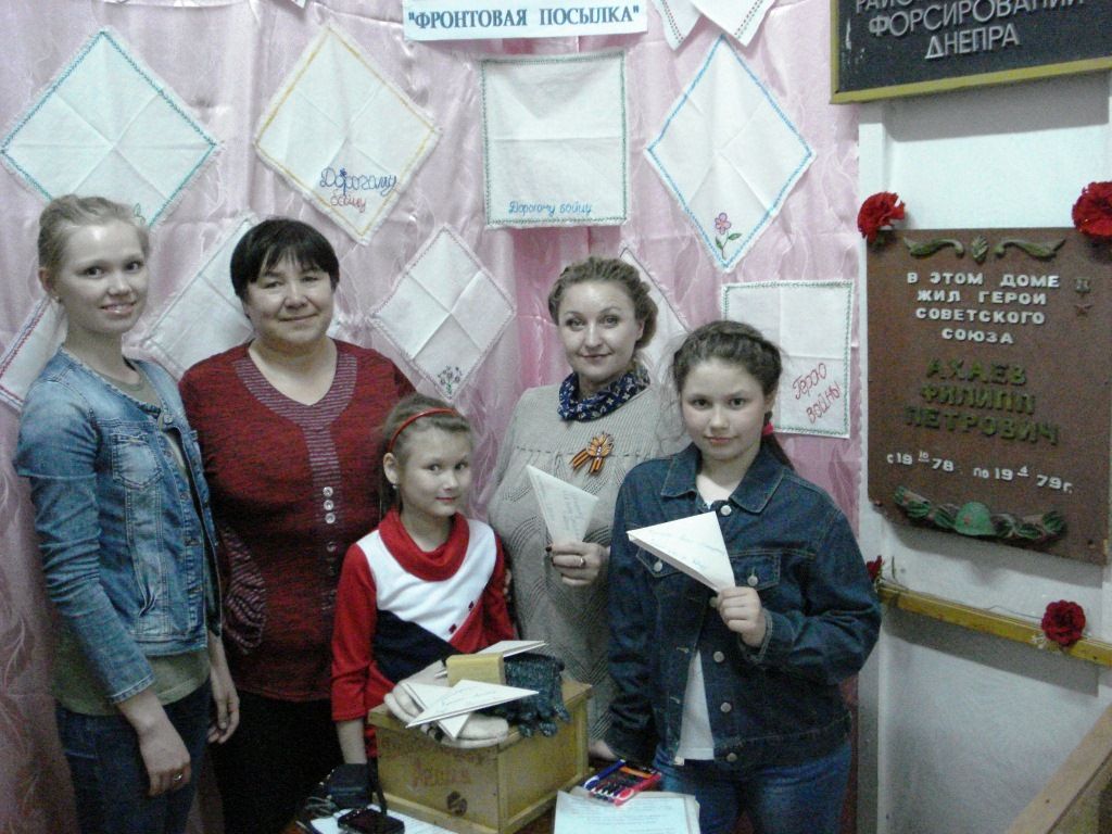 - обзор выставки декоративно-прикладного творчества «Фронтовая посылка» (педагог кружка рукодельниц Иванова Г.П.), с проведением мастер-класса по изготовлению фронтового письма – треугольника, педагогом дополнительного образования Негода И.М.;