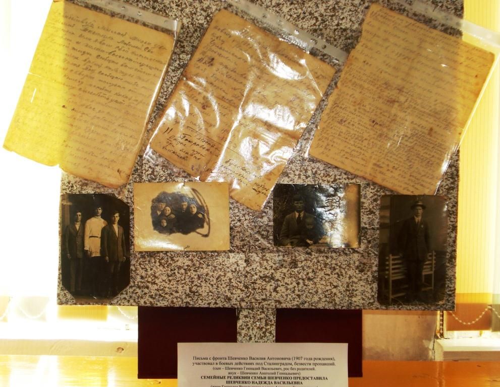 В отдел музейных фондов на выставку семейных реликвии «Помним. Гордимся. Храним», жительницы родного посёлка предоставили реликвии, хранившиеся в их семьях и передаваемые из поколения к поколению. Это и фронтовые письма, фотографии довоенного, военного и послевоенного времени, а также награды ветеранов-родственников и тружеников тыла Великой Отечественной войны.