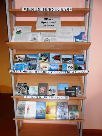 В Информационном отделе открытого доступа оформлена выставка «Земля иркутская». На выставке пользователям представлена информация о геральдике Иркутской области. Так же размещены электронные издания о Иркутской области, книги поэтов Иркутской области. Выставка будет действовать с 24 сентября до 10 октября. Приглашаем посетить выставку!