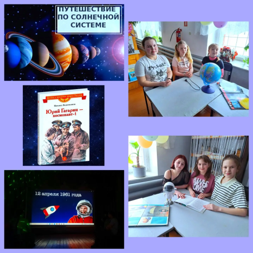 Библиотекарь рассказала ребятам о первом полёте Ю.А. Гагарина, который состоялся 12 апреля 1961 года, об освоении околоземного космического пространства и исследованиях планет Солнечной системы.